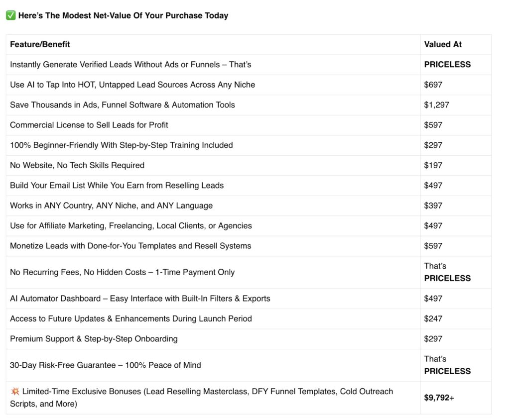 The ability to get paid upfront, target any niche worldwide, and generate verified leads with just one click makes this software an incredible value for both beginners and seasoned marketers.